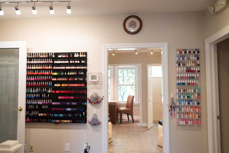 As a rental incentive, you can use the nail polishes, rack, and painted nail polish samples at no charge. We offer a variety of polishes, including CND Shellac, OPI lacquer, DND, and Zoya.